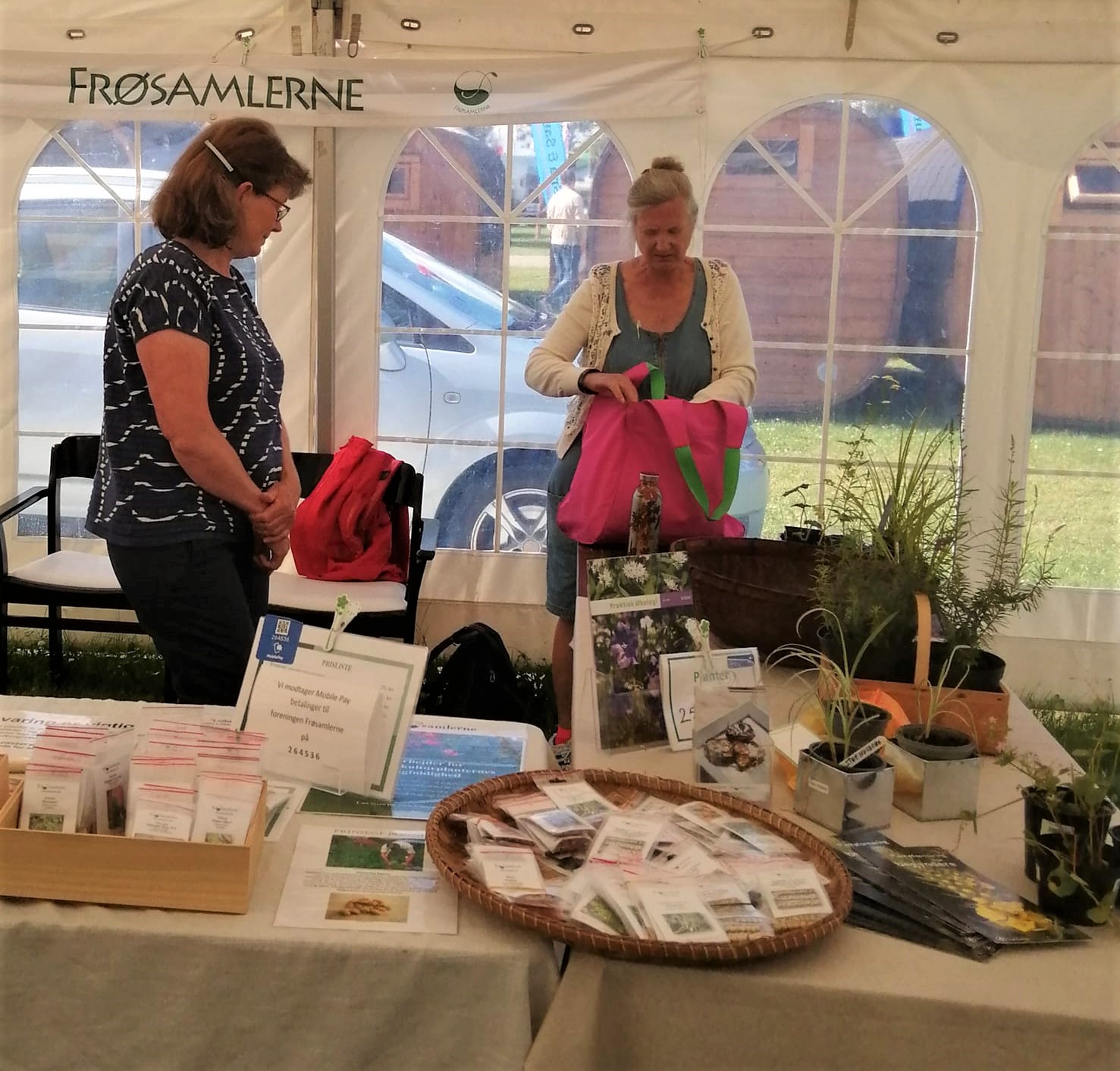 Vi står i telt, sammen med andre sælgere og der er altid en hyggelig stemning i have- og naturudstillingen, hvor der også er grønne oaser og tilbud af "fødevarer i naturen".